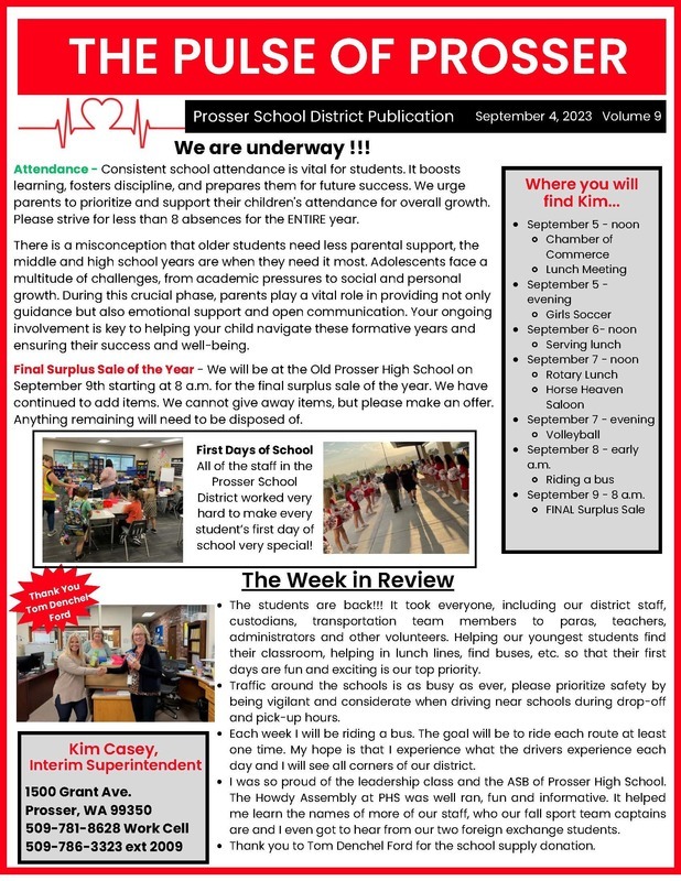 Prosser School District Student Handbook (English) - Attendance (see page 3)